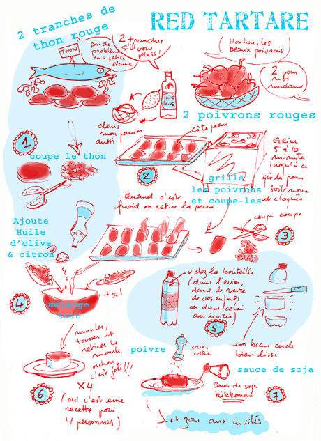 C est la recette la plus bordelique de l année…. (inutile de protester, j’ai remarqué aussi) mais je fais confiance à votre capacité d analyse et de synthèse: un tartare c est pas bien compliqué non plus! L’intérêt ici c’est le mélange thon rouge cru et poivron rouge grillé (froid) le tout en trés petits morceaux (si pas le temps d’émincer un coup de « pulse » dans votre robot).