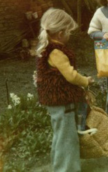Et comme elle est revenue Samedi d’Emmaüs avec une blouse de mamie immédiatement recoupée en jupette, il a bien fallu grimper sur une chaise pour faire la photo pour montrer à Chris… qui a répliqué par son image d’elle, jardinant.