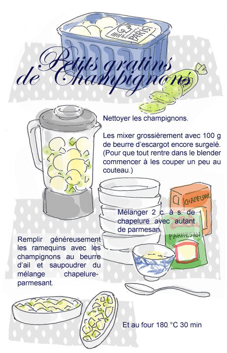 et pour faire une transition en douceur, on commence par terminer le beurre persillé (celui pour les escargots) qu’on a stocké dans le congelo. 100 g pas plus pour toute une barquette de champigons de Paris… moi j’dis, ça compte light.