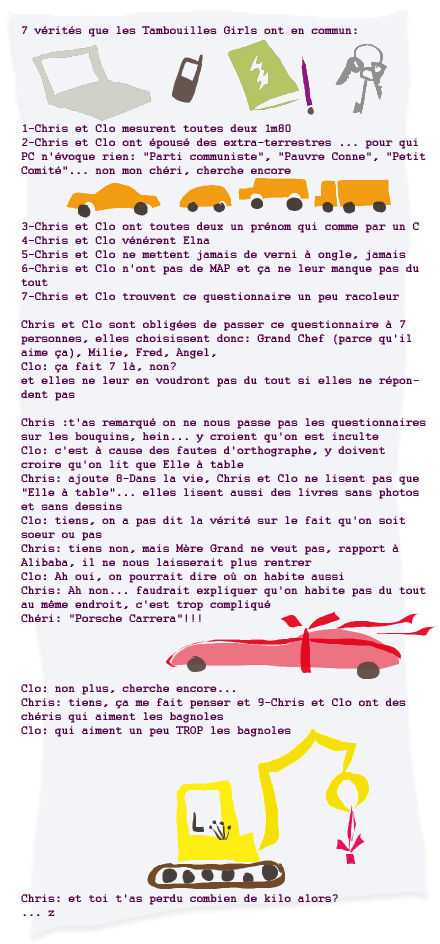 En réponse à Jess qui nous passe un questionnaire sur nos 7 vérités… voilà ce que l’on peut dévoiler aujourd’hui: