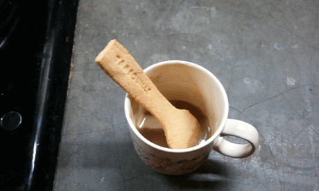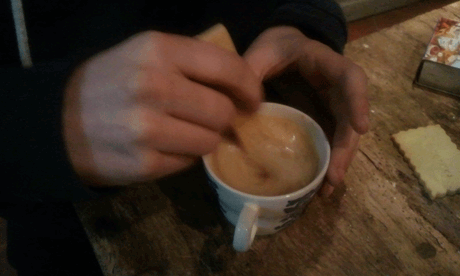 Le truc pour « jouer » avec une cuillère en sablé, c’est de laisser d’abord fondre le sucre tout seul dans le café chaud et ensuite seulement tourner avec la cuillère.