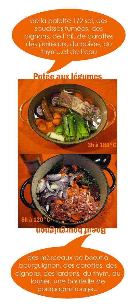 Vacances d’hiver + grandes tablées = chez nous plats mijotés et recyclage prévu pour préparer en 1 fois deux repas (et hop du temps de vacances en plus). Ce week end ça a donc donné Vendredi midi géante marmite de porc (quantitées doublées par rapport aux convives), cette fois à la bière clic pour la recette et cuisson d’une double quantité de pommes de terres à chair farineuses et Samedi soir Hachis parmentier maison et salade verte.