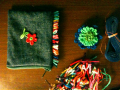 - des fils de coton de couleurs assortis (ou pas)… ici comme on approche de Noël, j’ai choisi une variation de rouge.