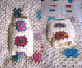 Une fois ces éléments rassemblés, il suffit de crocheter en mailles serrées des « rubans » au crochet (n°2,5 / 3) de 2, 3 ou 4 rangs de façon à avoir des largeurs différentes.