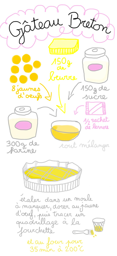 Et comme promis, pour compléter le gâteau choco-chantilly d’anniversaire, voici la recette du gâteau breton qui permet d’employer les 8 jaunes d’oeufs!