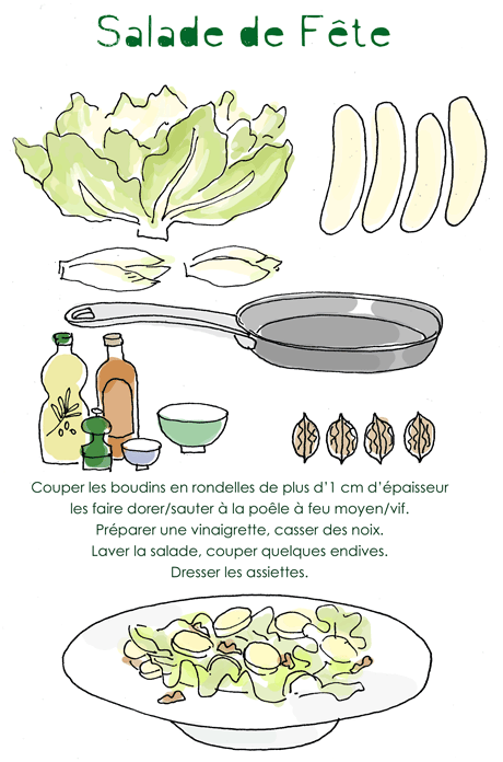 En période de fête de fin d’année où les repas gourmands sont assez rapprochés une salade de fête est un « joker » souvent bien apprécié et c’était d’ailleurs notre diner de Réveillon 2011