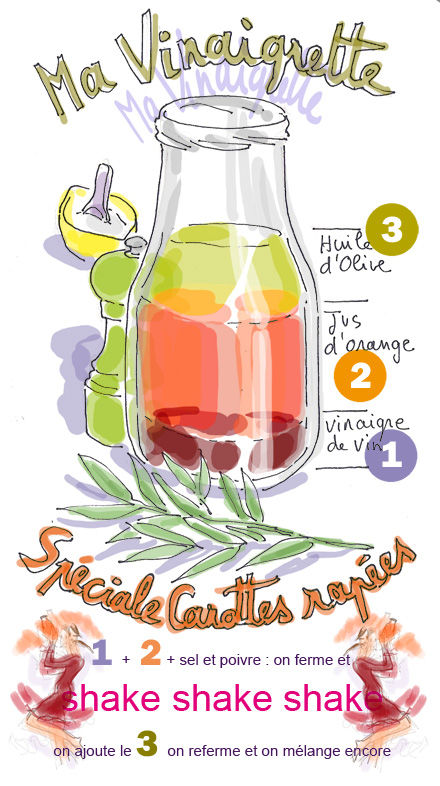 Sur les premières tomates, sur les magrets de canard grillés, sur les salades composées… le flacon est sur la table à chaque repas. Jusqu’à épuisement et là… pas de Super U à porté de cabas pour Clo donc un coup d’oeil à la composition… que des choses simples ! hop ! on passe au fait maison